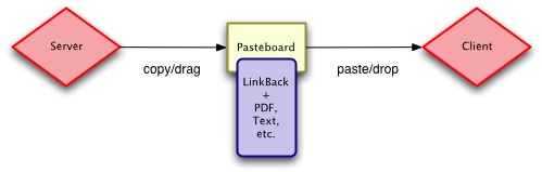 - A server application provides LinkBack data as an additional type on the pasteboard during normal pasteboard operations such as cut, copy or drag operations. It also responds to requests from client applications to edit or refresh the LinkBack data at a later time.